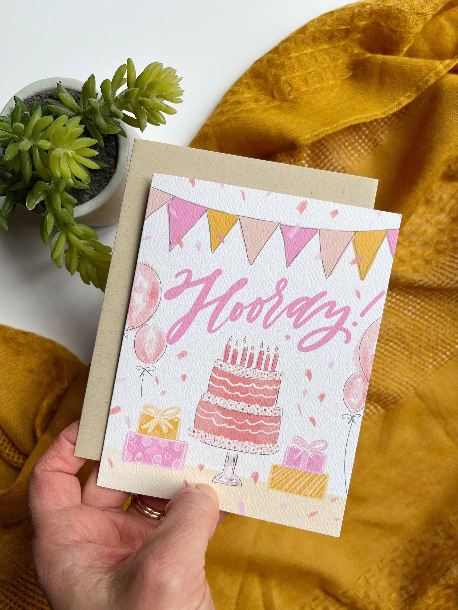 Hooray Birthday Card - Birthday Cake, Celebration, Candles