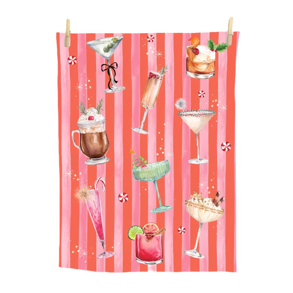Make spirits bright this festive season with our Christmas Cocktails Tea Towel! Featuring charming watercolor stripes and holiday drink illustrations by Cami Monet, this tea towel is the perfect blend of function and festive flair. Whether you're adding a pop of holiday cheer to your kitchen or gifting your favorite cocktail enthusiast, this towel is sure to delight!
