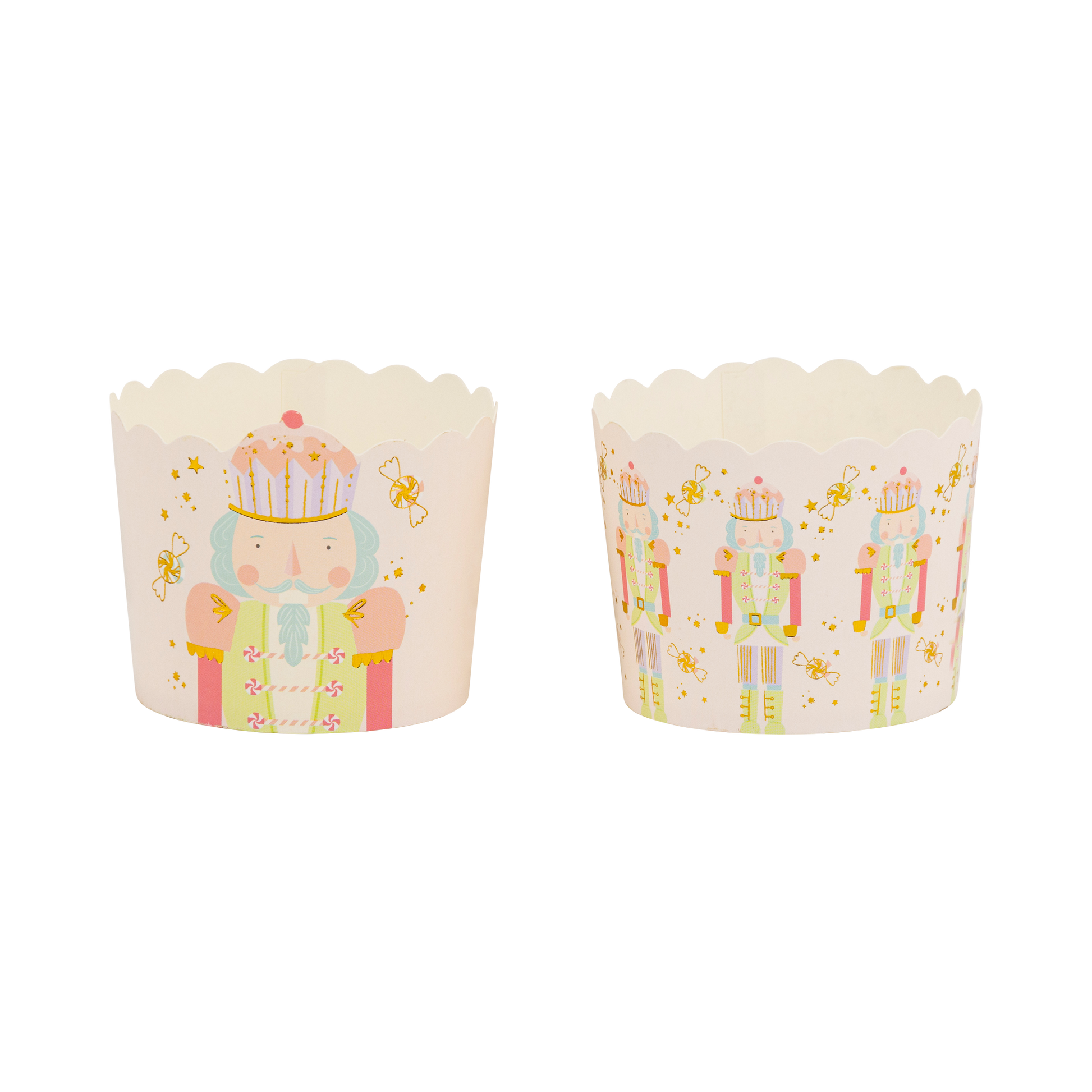 Get your holiday baking on with these adorable nutcracker-shaped baking cups! Featuring gold foil accents, they add an elegant touch to your Christmas treats. Whether you're baking cupcakes or muffins, these festive cups are perfect for showing off your creativity while making delicious holiday goodies.