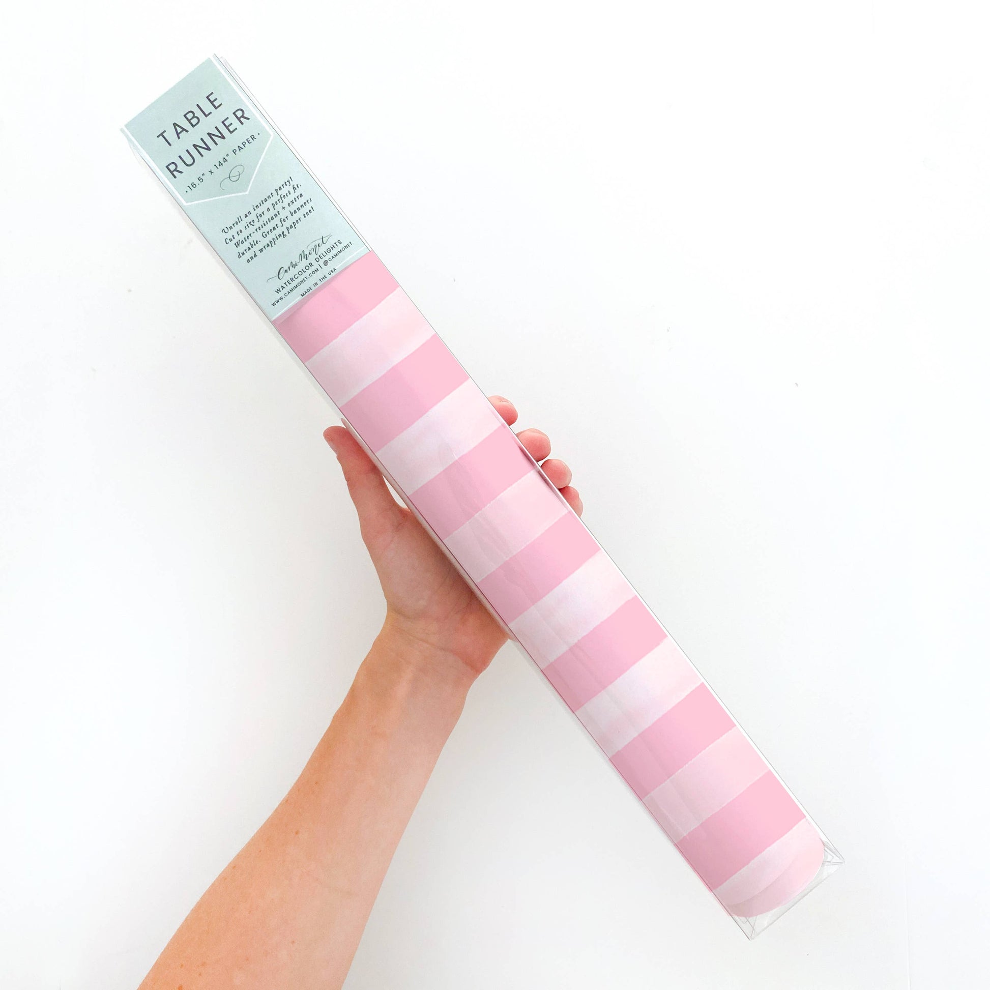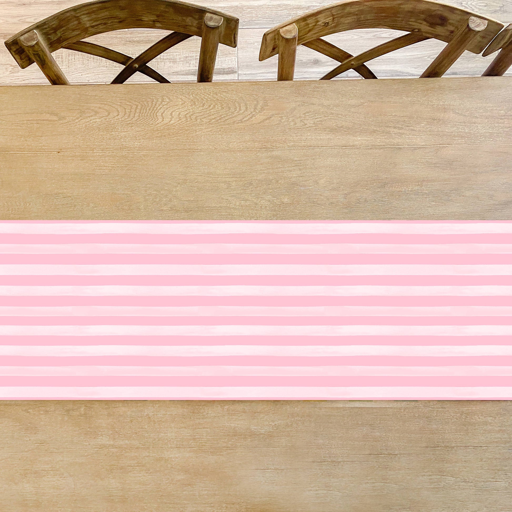 Add a touch of charm to your table with our Pretty Pink Stripe Table Runner! Perfect for baby showers, birthdays, Valentine's, Easter, and more, this hand-painted watercolor design in dreamy blush tones will elevate any occasion. Durable, water-resistant, and cut to size for a perfect fit, it’s an easy way to create a stylish tablescape. Made in the USA, with an original watercolor illustration by Cami Monet.