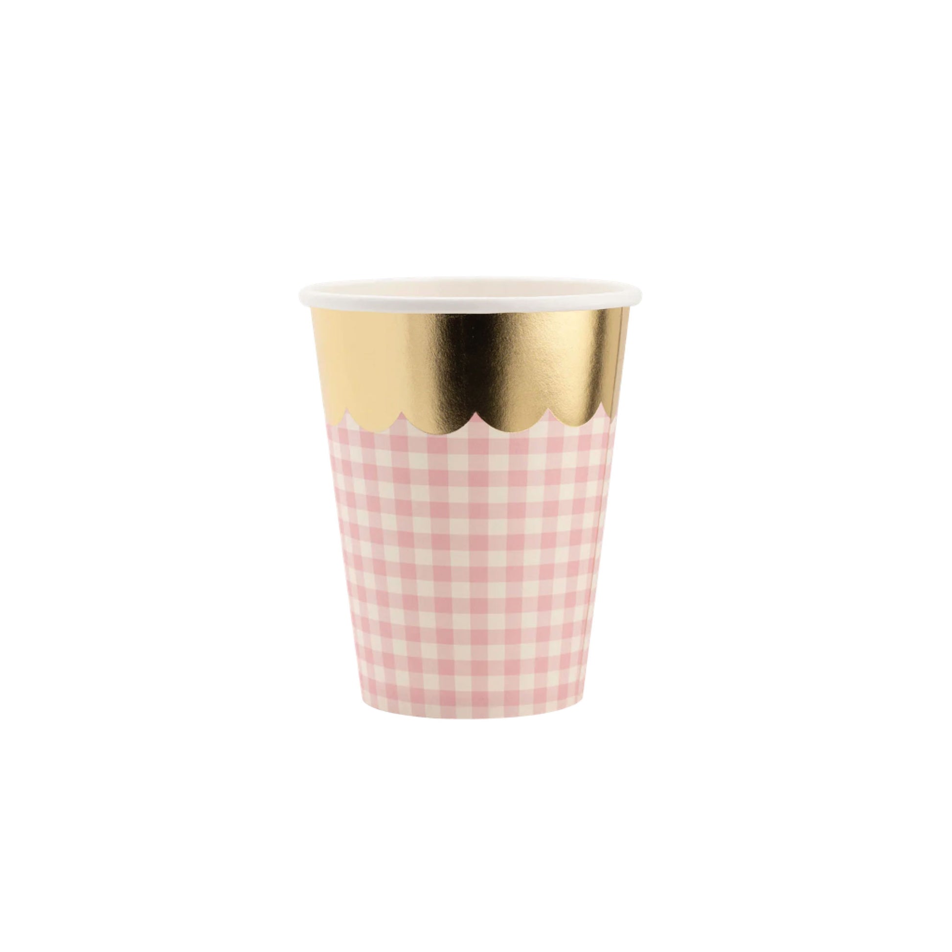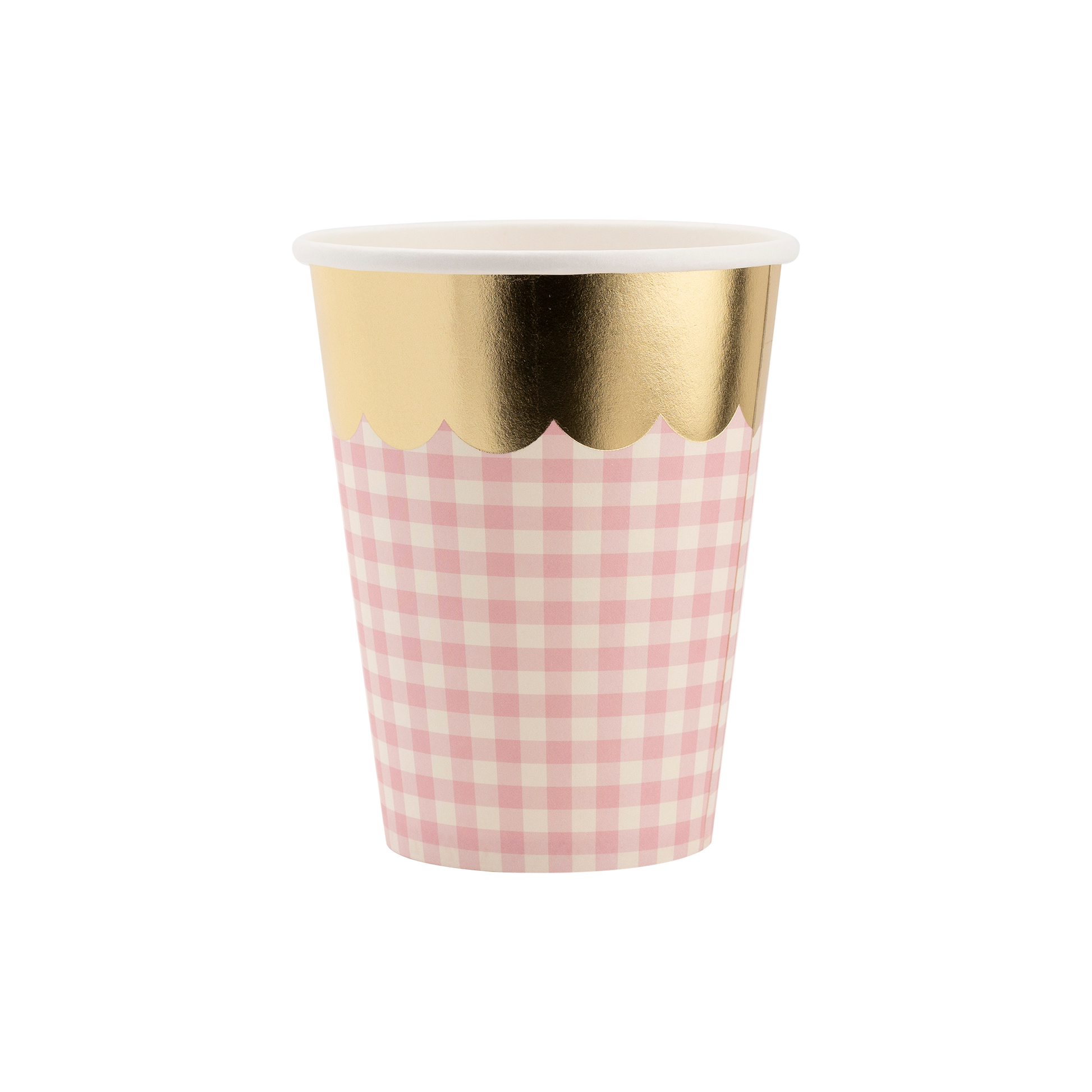 Celebrate in style with our Gingham Cups! These pastel gingham party cups feature a touch of shimmer with gold foil accents. Perfect for your spring party, these cups add a playful and stylish touch to your decor. Cheers to fun and unique celebrations!